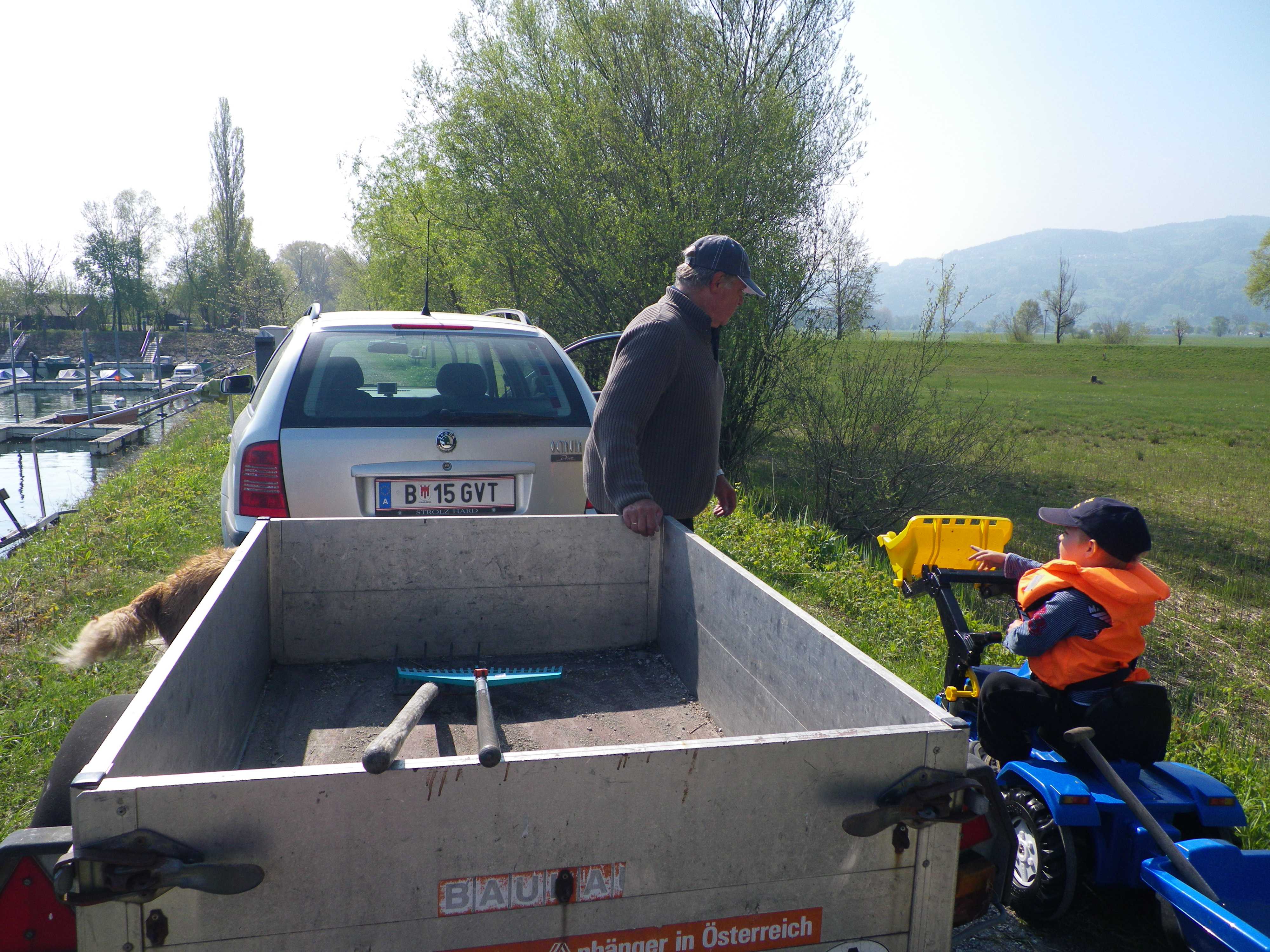 Siegmar Schneider mit Andreas und den (wieder) leeren Anhänger