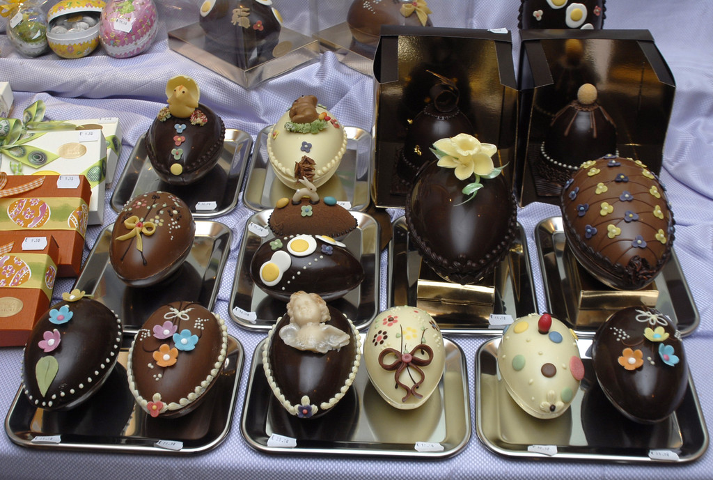 Geschenke in allen Formen und Farben aus edelster, französischer Schokolade. (Foto: Gerhard Scopoli, 15. April 2011)