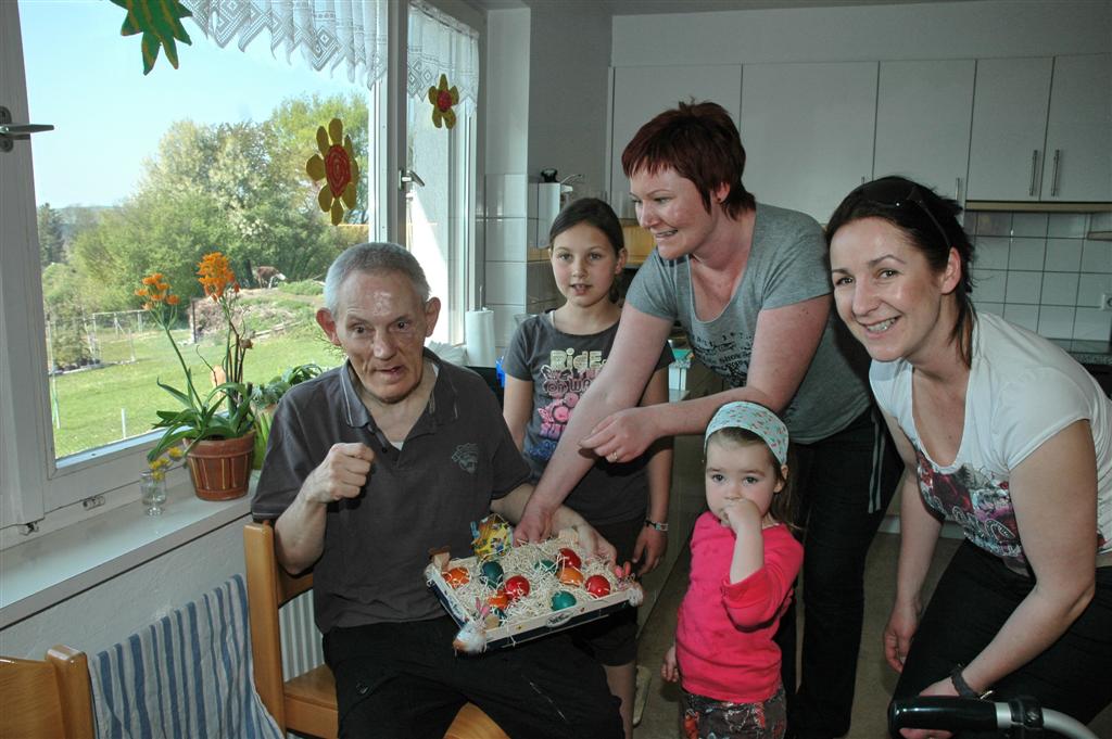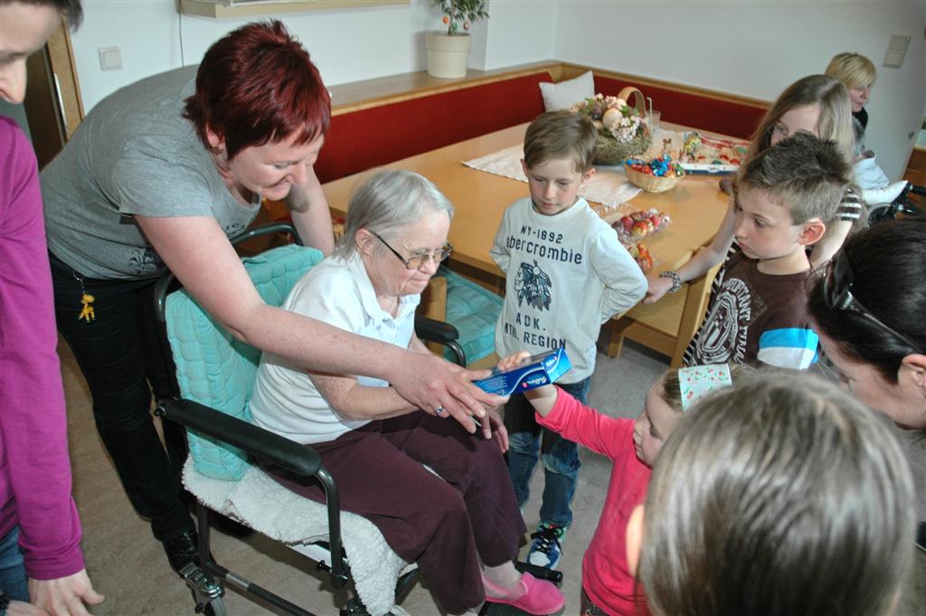 Im Rahmen der Vorbereitung für die erste hl. Kommunion besuchten einige Kinder die Bewohner des Hörbranzer Wohnheimes und erfreuten diese mit ihren "persönlichen" Ostereiern.