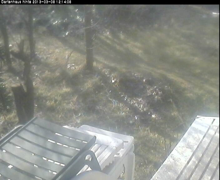Blick in den Garten der Residenz Rainer. Webcam auf ca. 170 Meter Seehöhe. (Quelle: rainergasse.com)