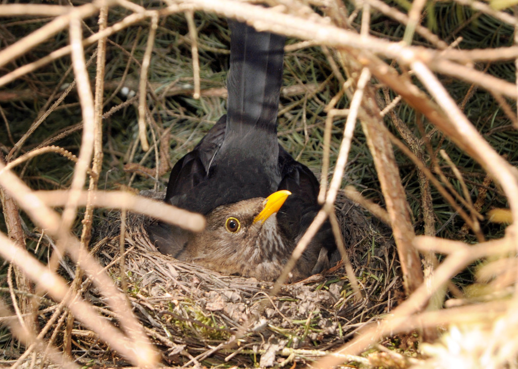 Brütende Amsel am Alten Rhein