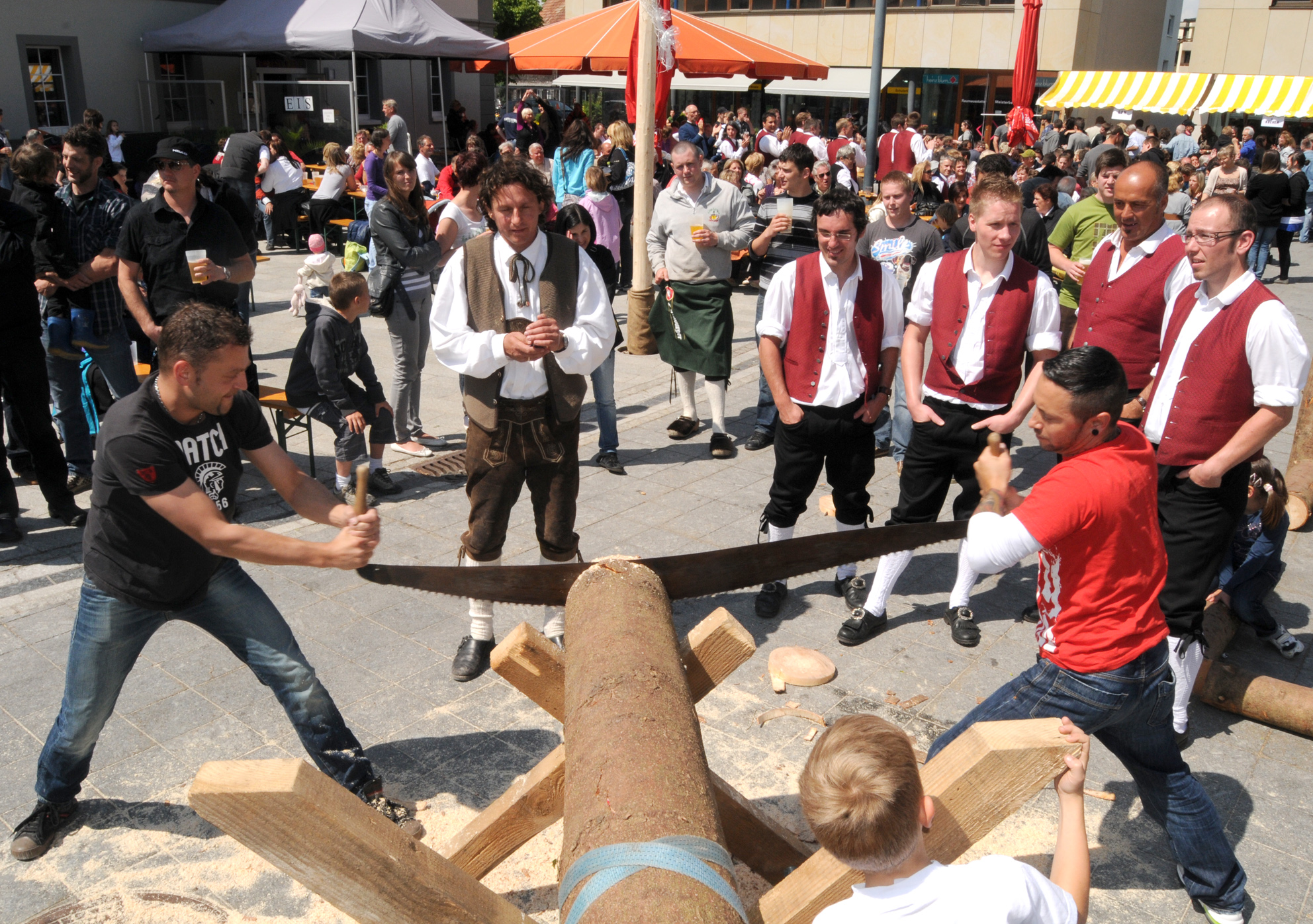 Maibaumklettern und Wettsägen in Höchst