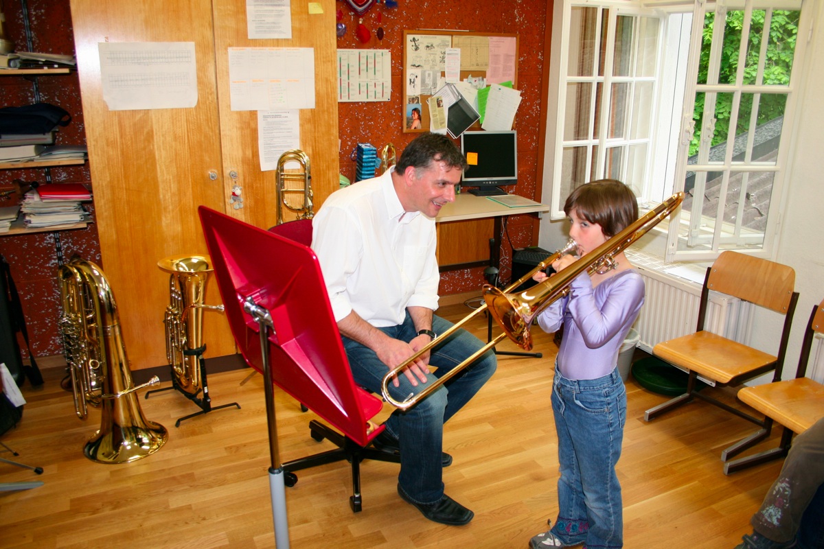 Bernhard Kurzemann gibt Bläser-Unterricht