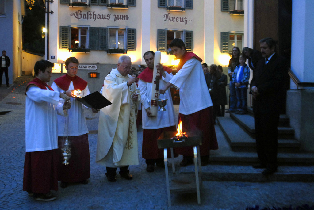 Zu Beginn der Osternachtfeier wurde das Feuer und die Osterkerze gesegnet. (Foto: Gerhard Scopoli, 23. April 2011)