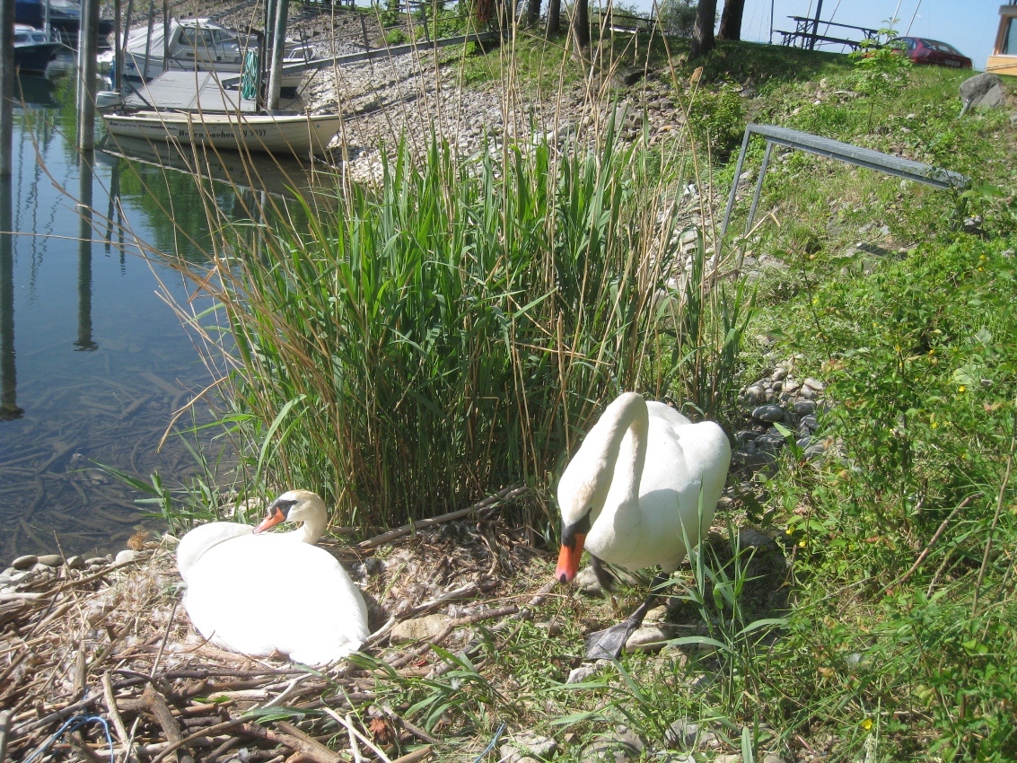 Schwanenpaar nistet im Lochauer Hafen