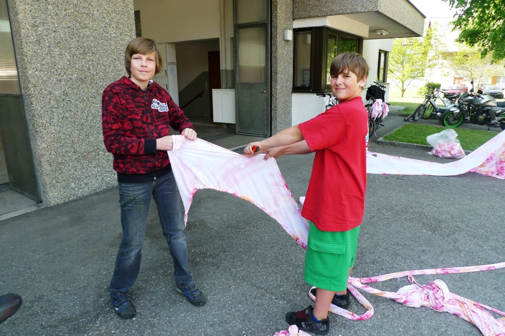 Robin und Timo machen Putzlappen.