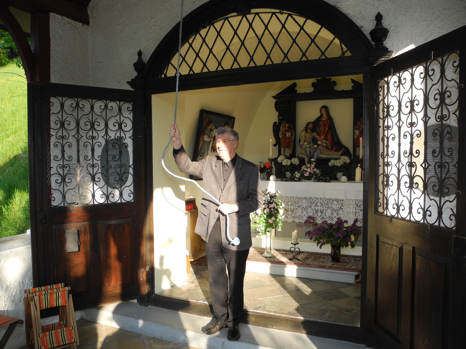 Dompfarrer Rudi Bischof läutet die Glocke in den Elendbild Kapelle
