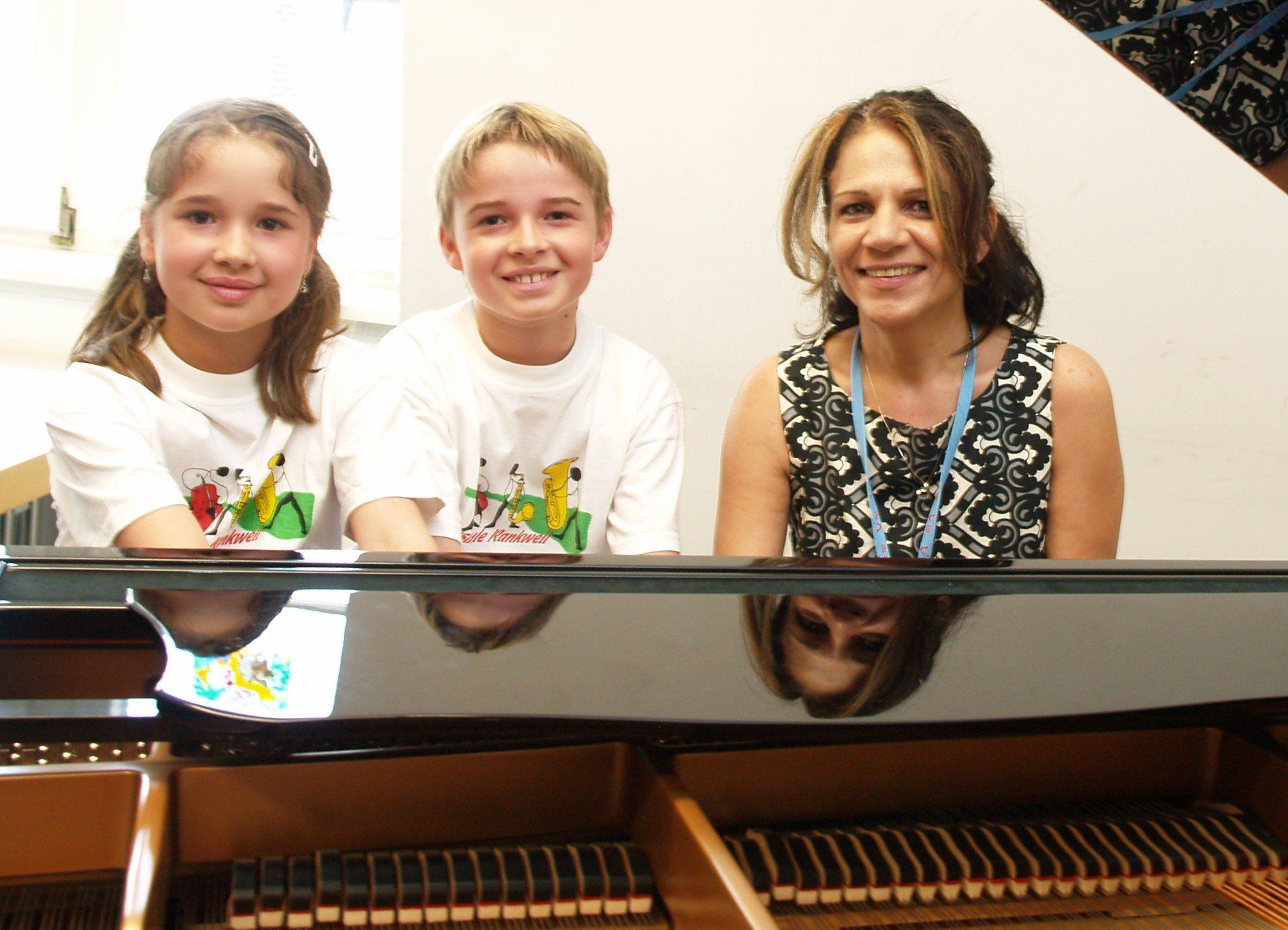 Klavierlehrerin Golram Dorri mit Jan und Lea Parsch