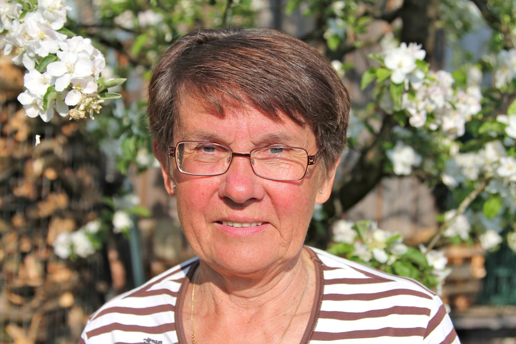 Hilde Bertsch, 65 "Ich habe sehr großes Interesse an der Gartenarbeit und bei der Pflege des Obstbaus. Die regelmäßigen Zusammenkünfte, ob in fachlicher Hinsicht, bei Wanderungen oder einfach beim geselligen Zusammensein gefallen mir besonders".