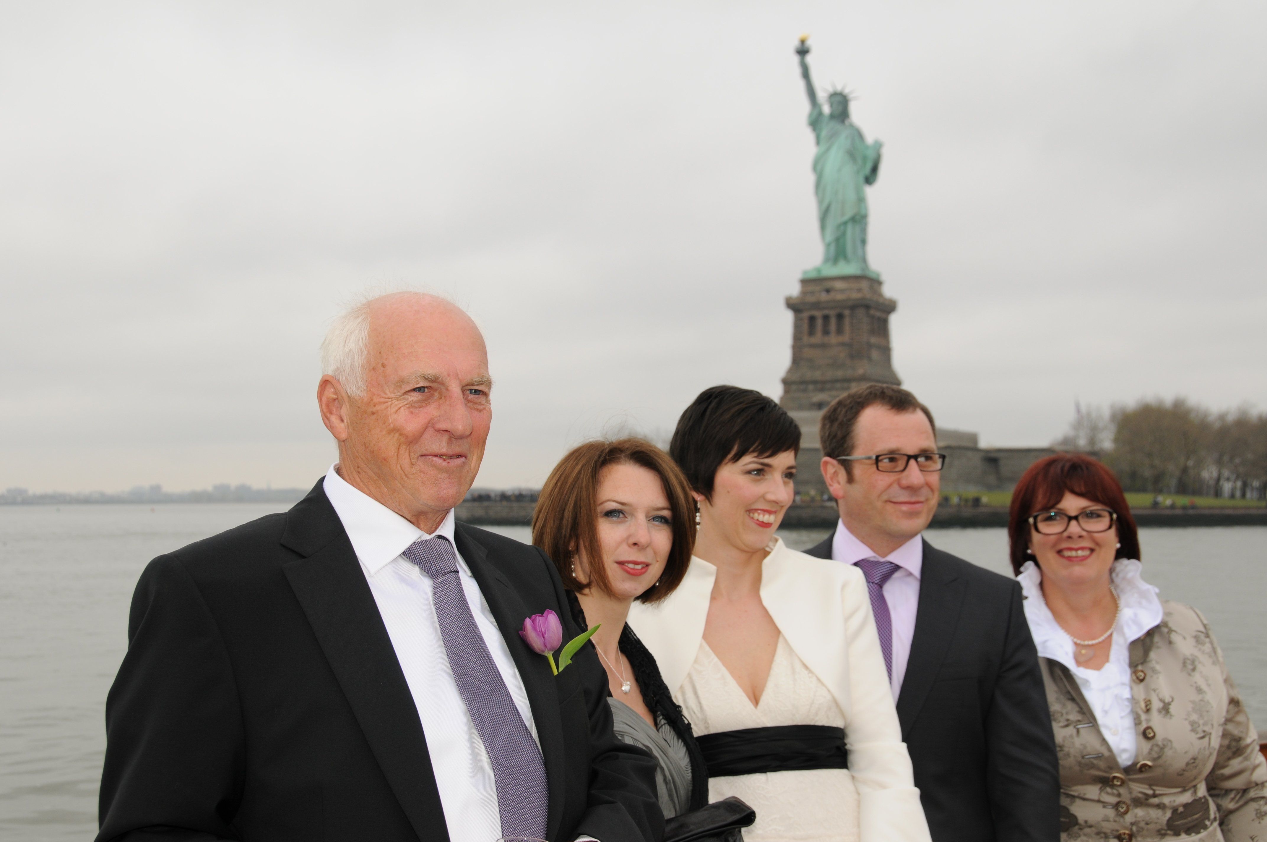 Gruppenbild mit Freiheitsstatue im Hintergrund.