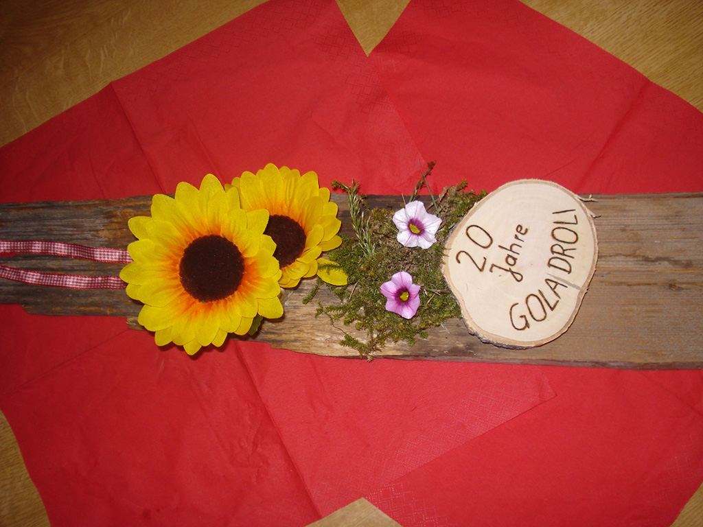 Tischdekoration für das große Jubiläumsfest "20 Jahre Tschaggunser Gola Droli", das am 4. Juni 2011 im Aktivpark Montafon groß gefeiert wird. (Foto: Gola Droli)