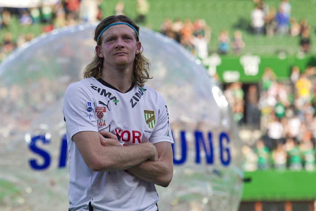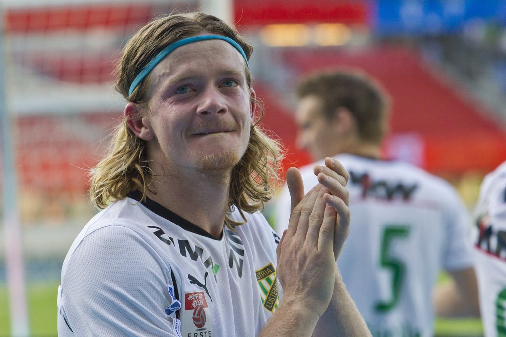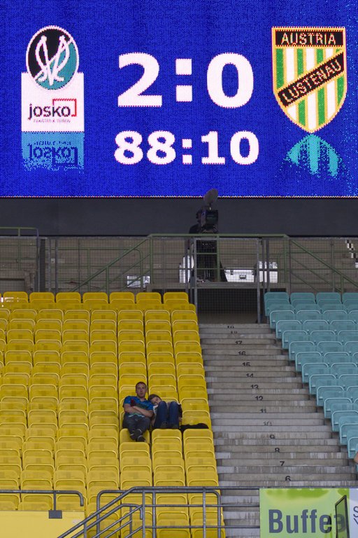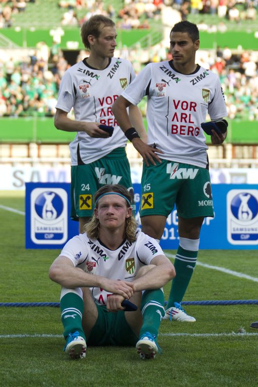 Die Spieler der Austria Lustenau bedanken sich bei ihren mitgereisten Fans im Wiener Happel Stadion