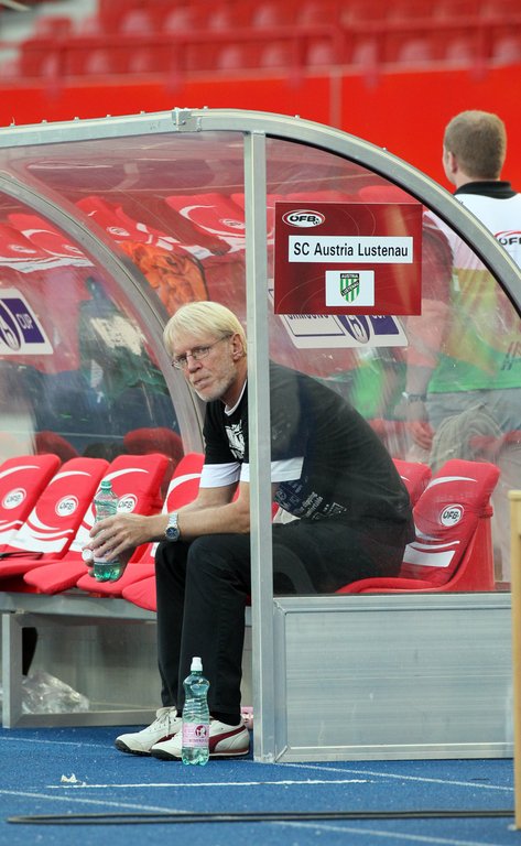 Die Spieler der Austria Lustenau bedanken sich bei ihren mitgereisten Fans im Wiener Happel Stadion