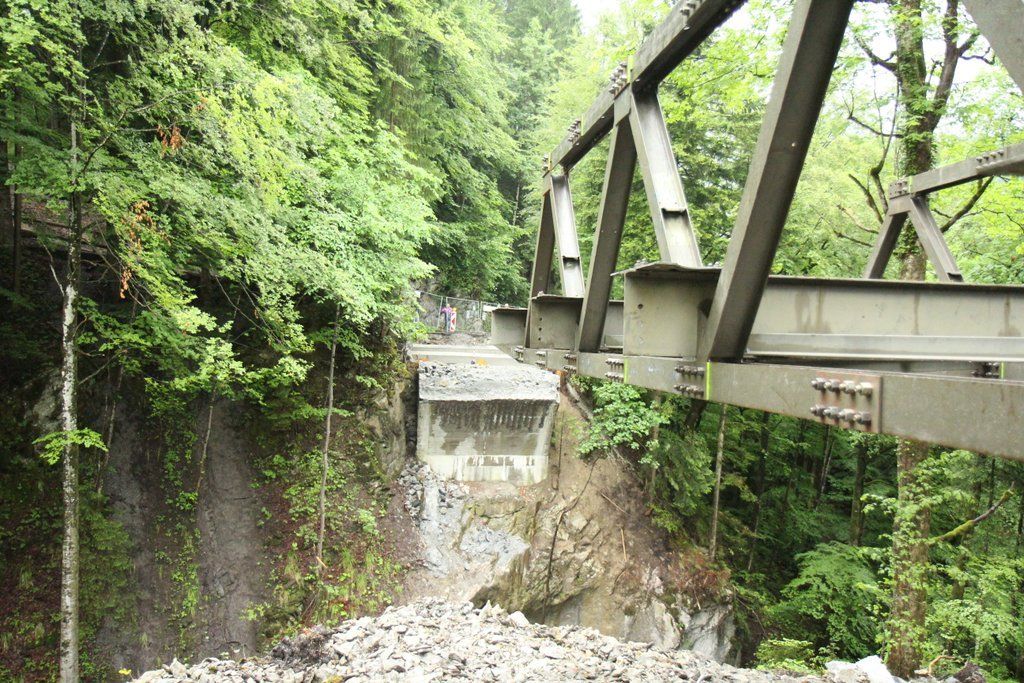 Behelfsbrücke wird über Schlucht geschoben