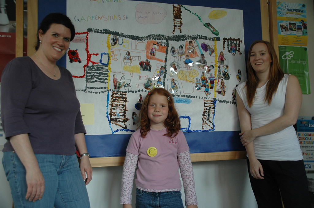 v.l. Tina, Eva & Lisa von der Gartenstraße stellten im Gemeindeamt aus