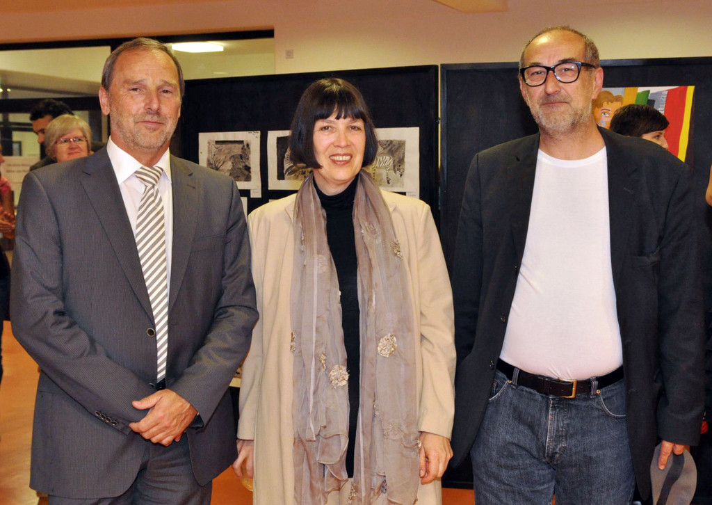 Dir. Klemens Voit mit LSI Christine Schreiber und Künstler Hubert Matt.