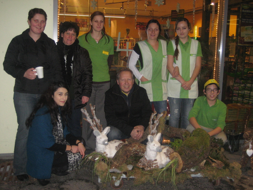 Das Adeg-Team vor ihrem schönen Adventsfenster.