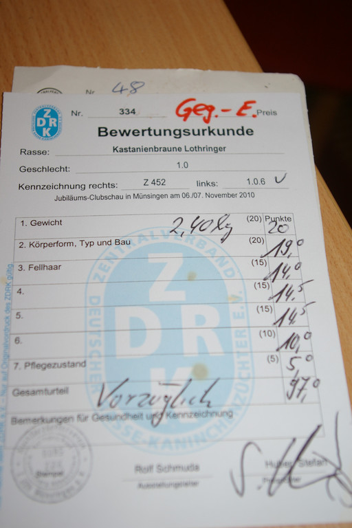 Die Bewertungsurkunde beurteilt das Tier bei den Tierschauen