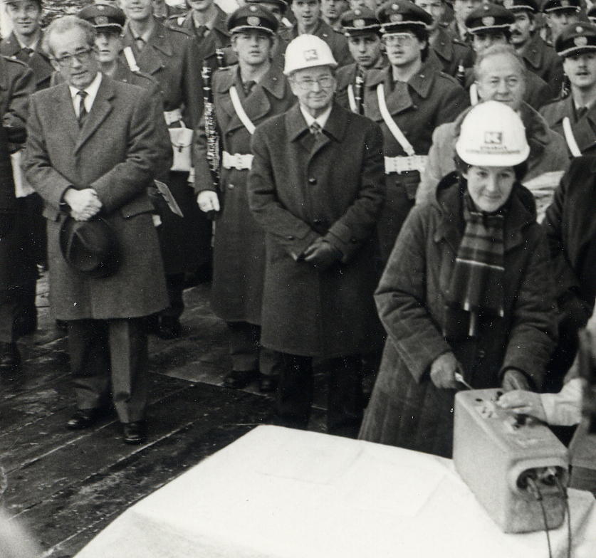 Die Tunnelpatin Elisbeth Bilz löste den Sprengschuß aus.