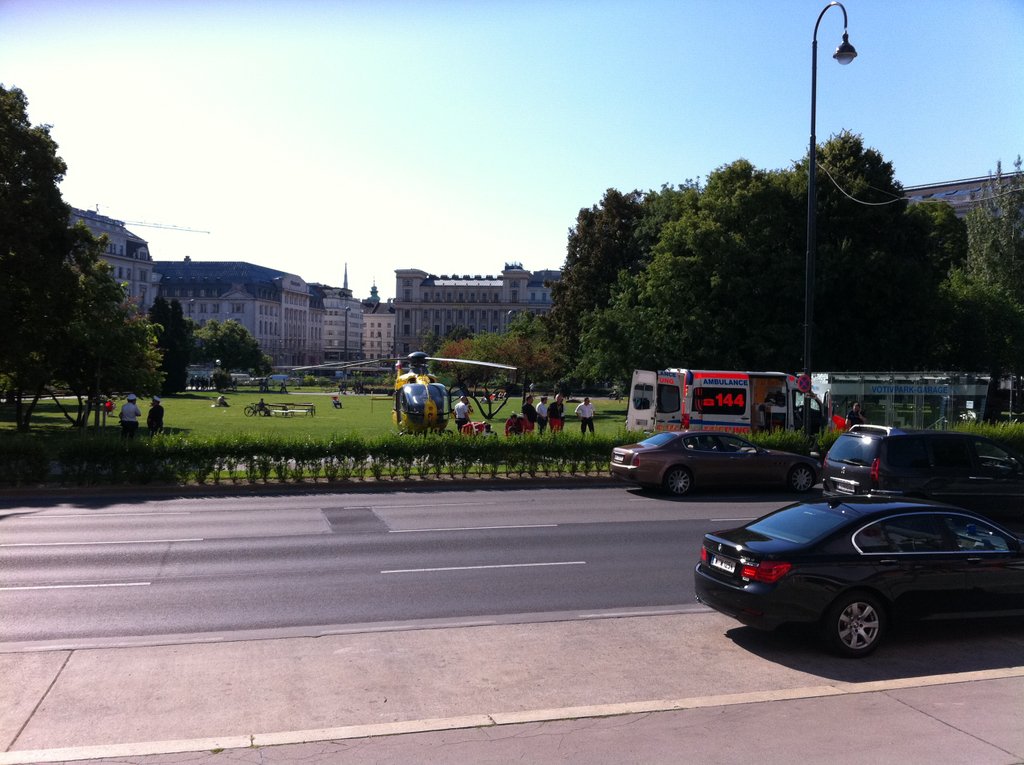 Straßenbahnunfall Schwarzspanierstraße 28.6.: Abtransport Hubschrauber