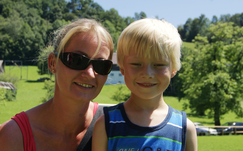 Karin mit Jakob bei der Olympiade