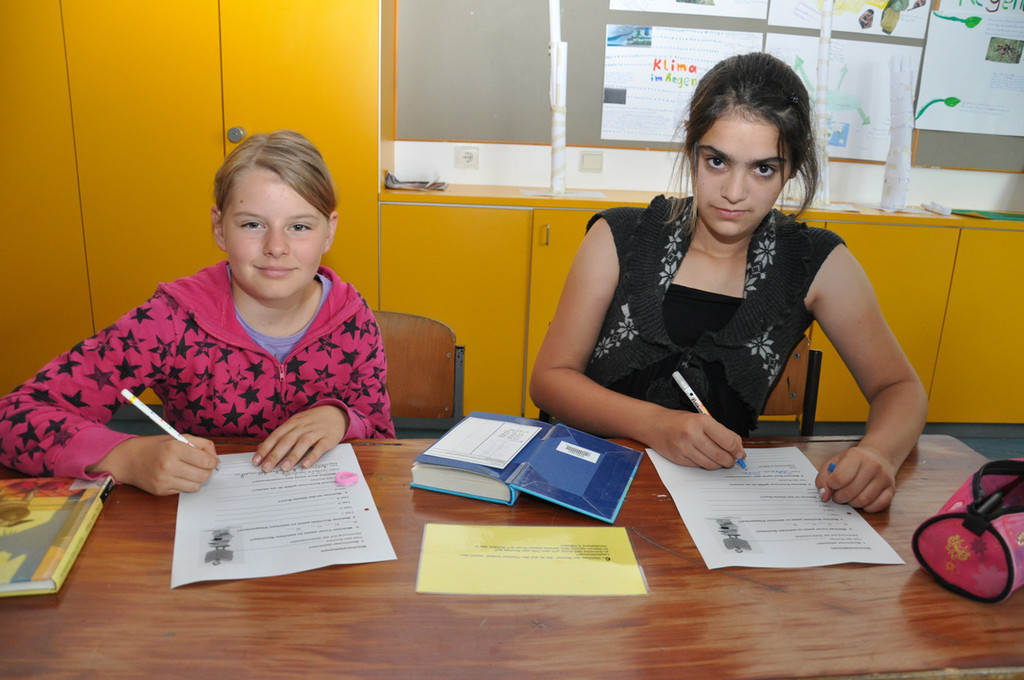 Jana Graß und Elif Göksen lösen Lesestationen in der 1b-Klasse