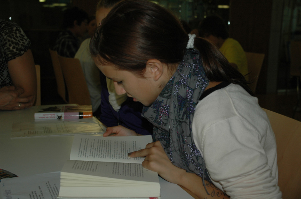 Laura liest eine Stelle aus ihrem Buch nach dem Frühstück