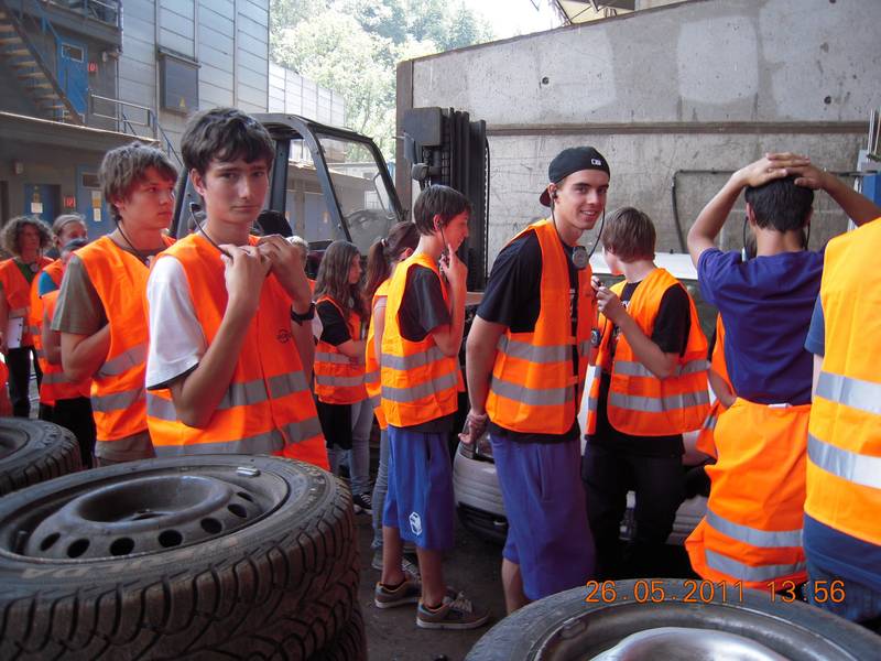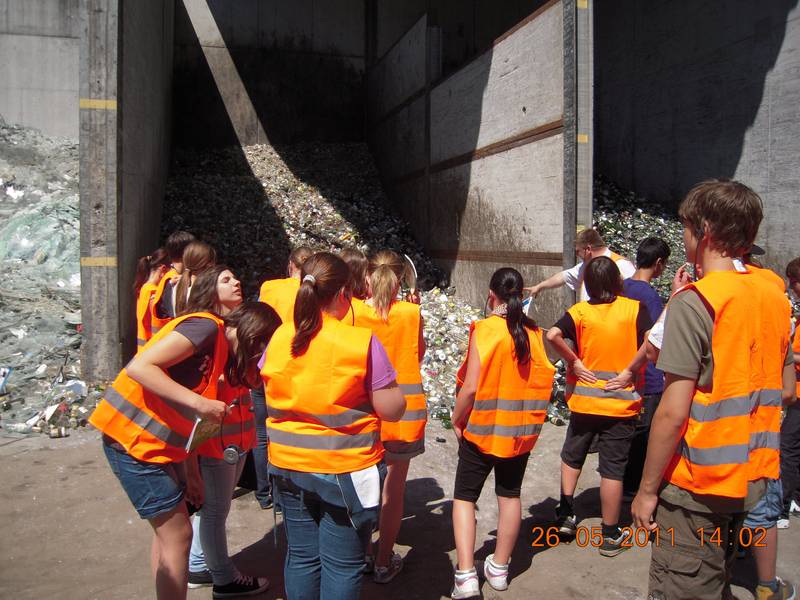 Die 4b der Praxishauptschule Feldkirch-Tisis anlässlich einer Biologieexkursion bei der Abfall-Entsorgungsfirma Loacker in Götzis.