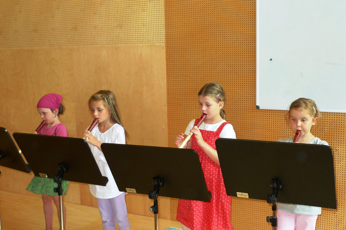 Anna, Paula, Emma und Lena flötelten das erste Jahr mit Begeisterung.