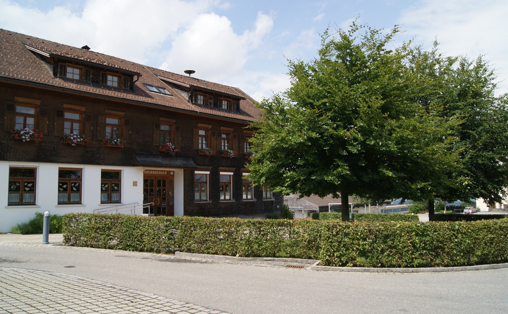 Mit der Schulplatzgestaltung konnte ein räumgliche Trennung zur Straße erreicht werden. Ebenso wurden Parkflächen und ein kleiner Sportplatz errichtet.