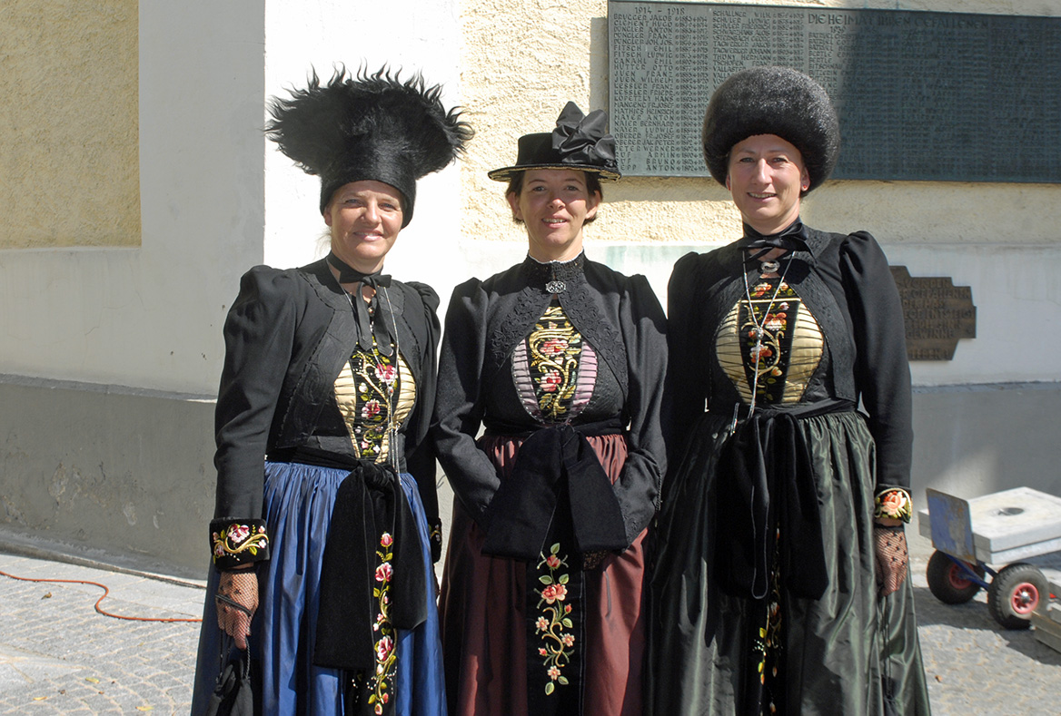 Petra Stemer, Margret Forstinger und Petra Stocker in der Montafoner Festtagstracht. (Foto: Gerhard Scopoli, 10. Juli 2011)