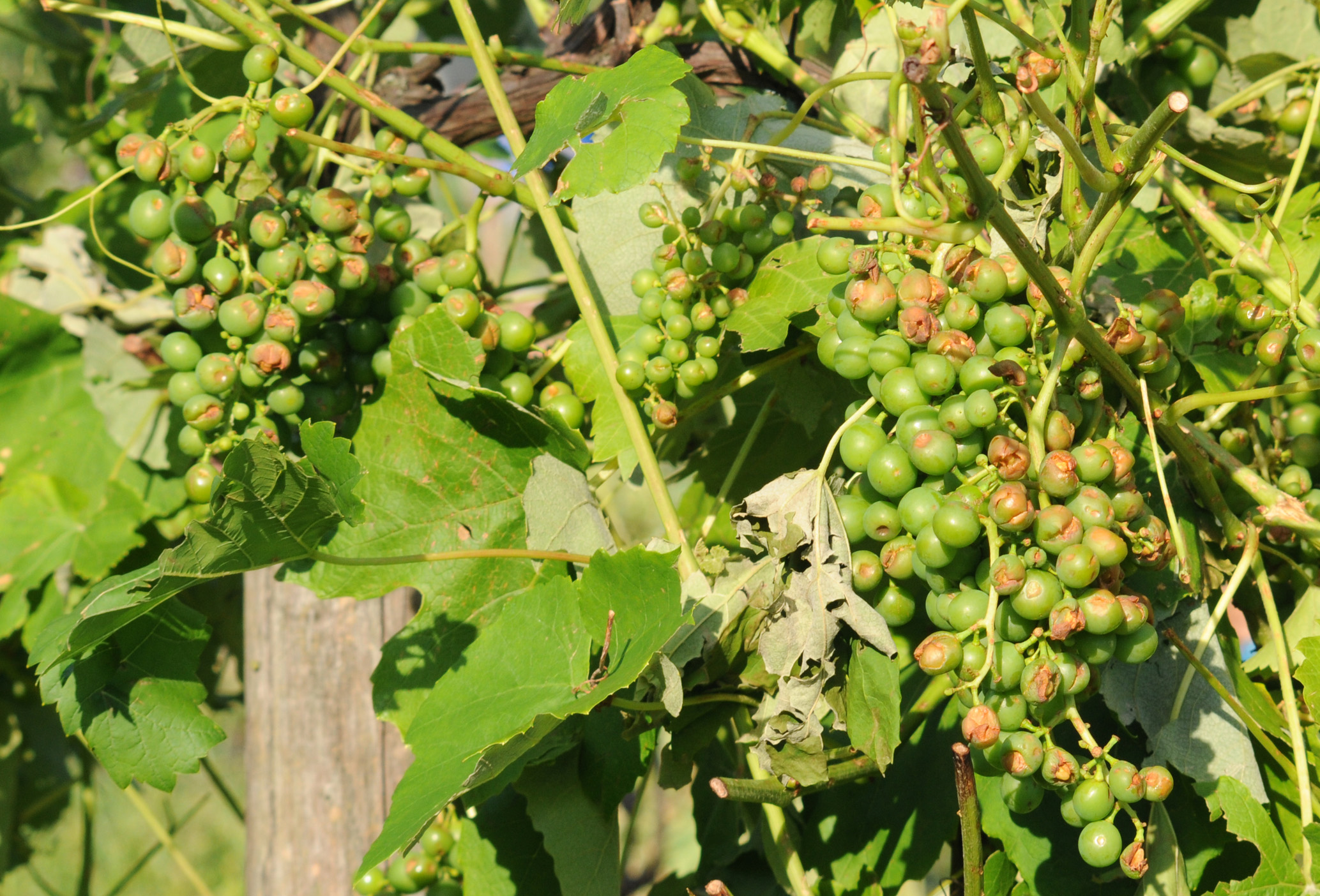 Vom Hagel beschädigte Reben