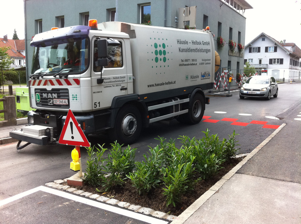 Vor der Bepflanzung wurden zwei Parkplätze markiert.