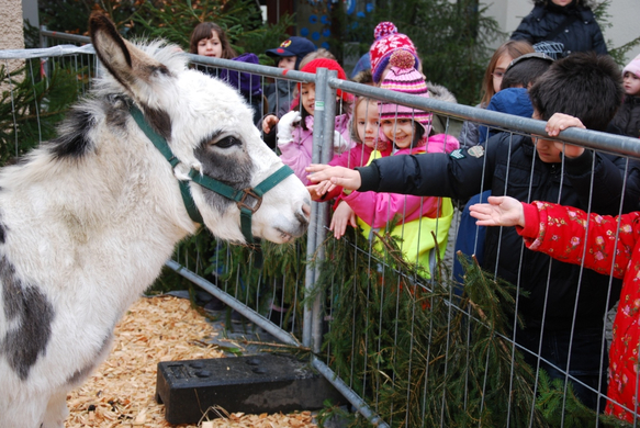 Der Esel in der lebenden Krippe freute sich über die kleinen Besucher.