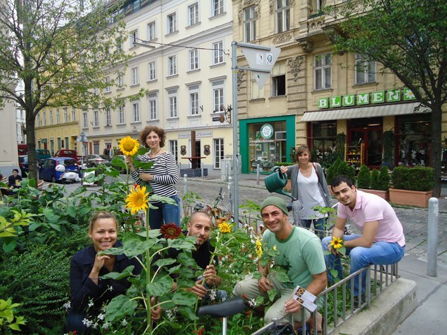 Sonnenblumen in Neubau Guerilla Gardenining 29. Juli 2011