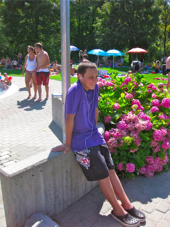 Julian relaxt neben der Dusche mit Bushido-Musik