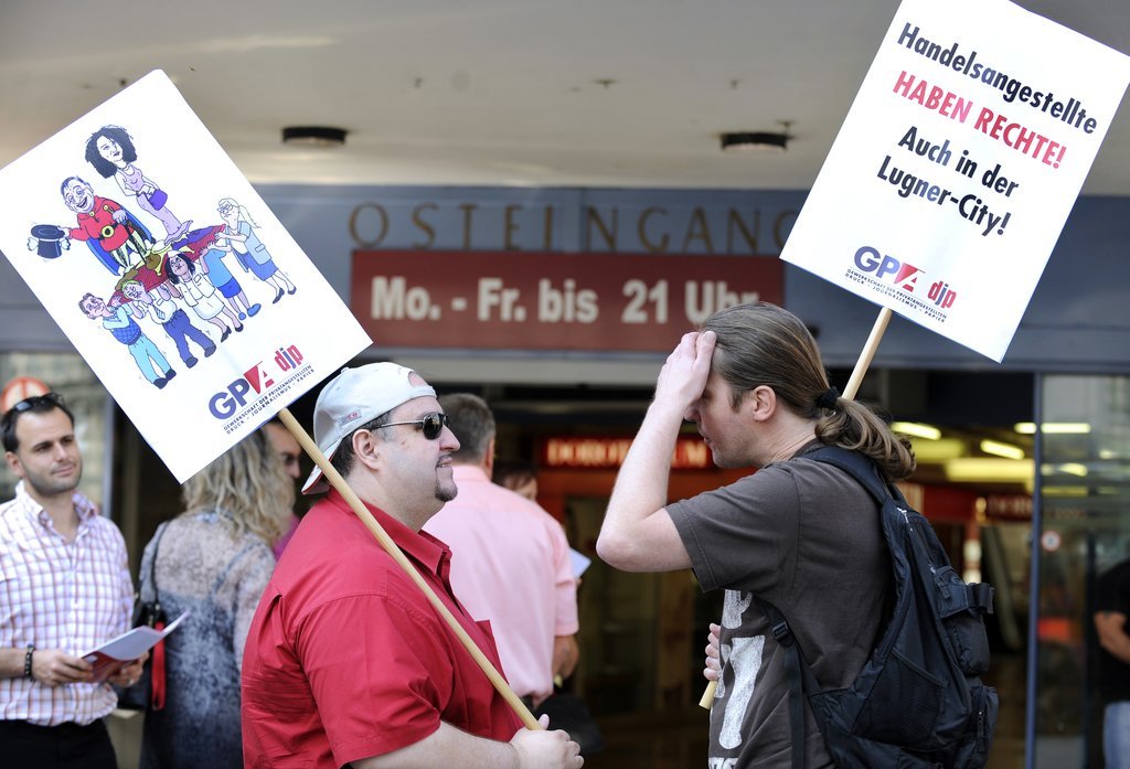 Proteste gegen Sonntagsöffnung vor Lugner City