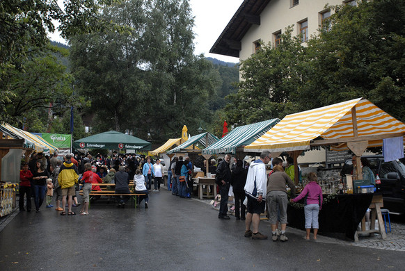 Der "Sommerburamarkt" fand auf dem Gemeindeparkplatz vor der "Alta Gme" in Tschagguns statt. (Foto: Gerhard Scopoli, 5. August 2011)