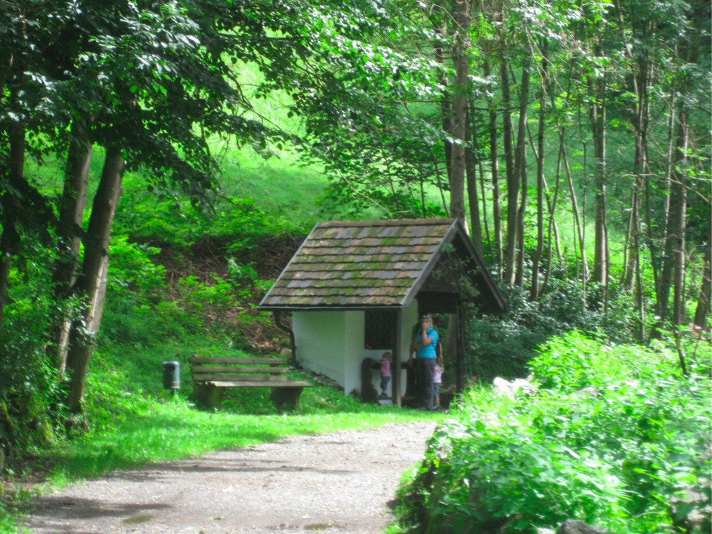 Wanderung zum Einstieg vorbei an einer Kapelle und vielen Wasserfällen