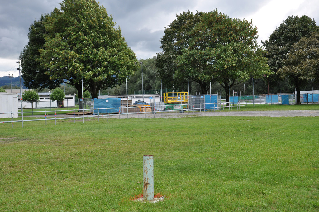 Erste Aufbauarbeiten für das Harder Seefest