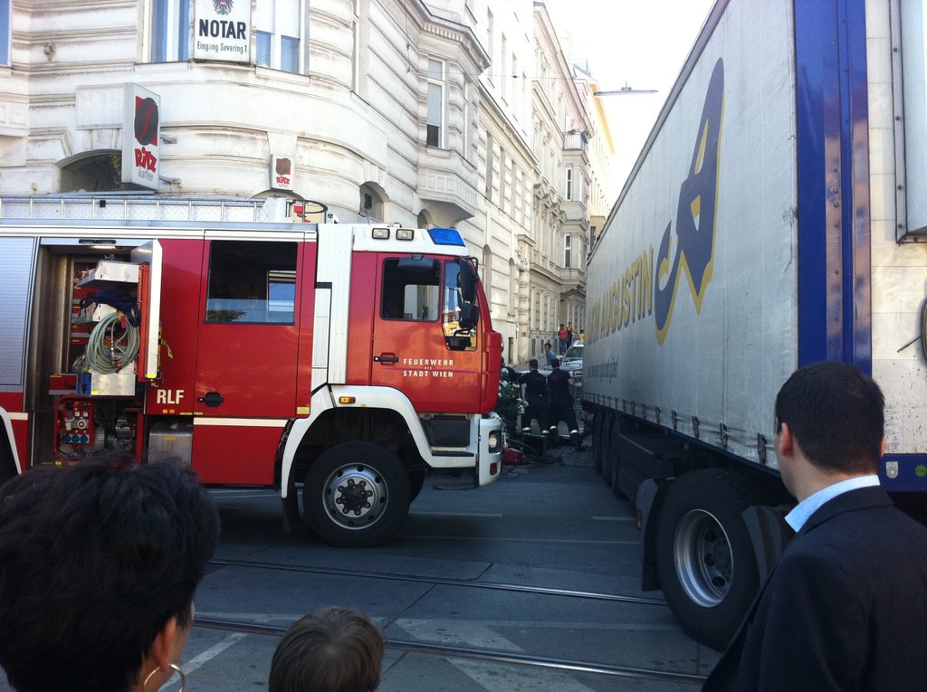 Lkw bleibt bei Kreuzung Währinger Straße/Nussdorferstraße stecken