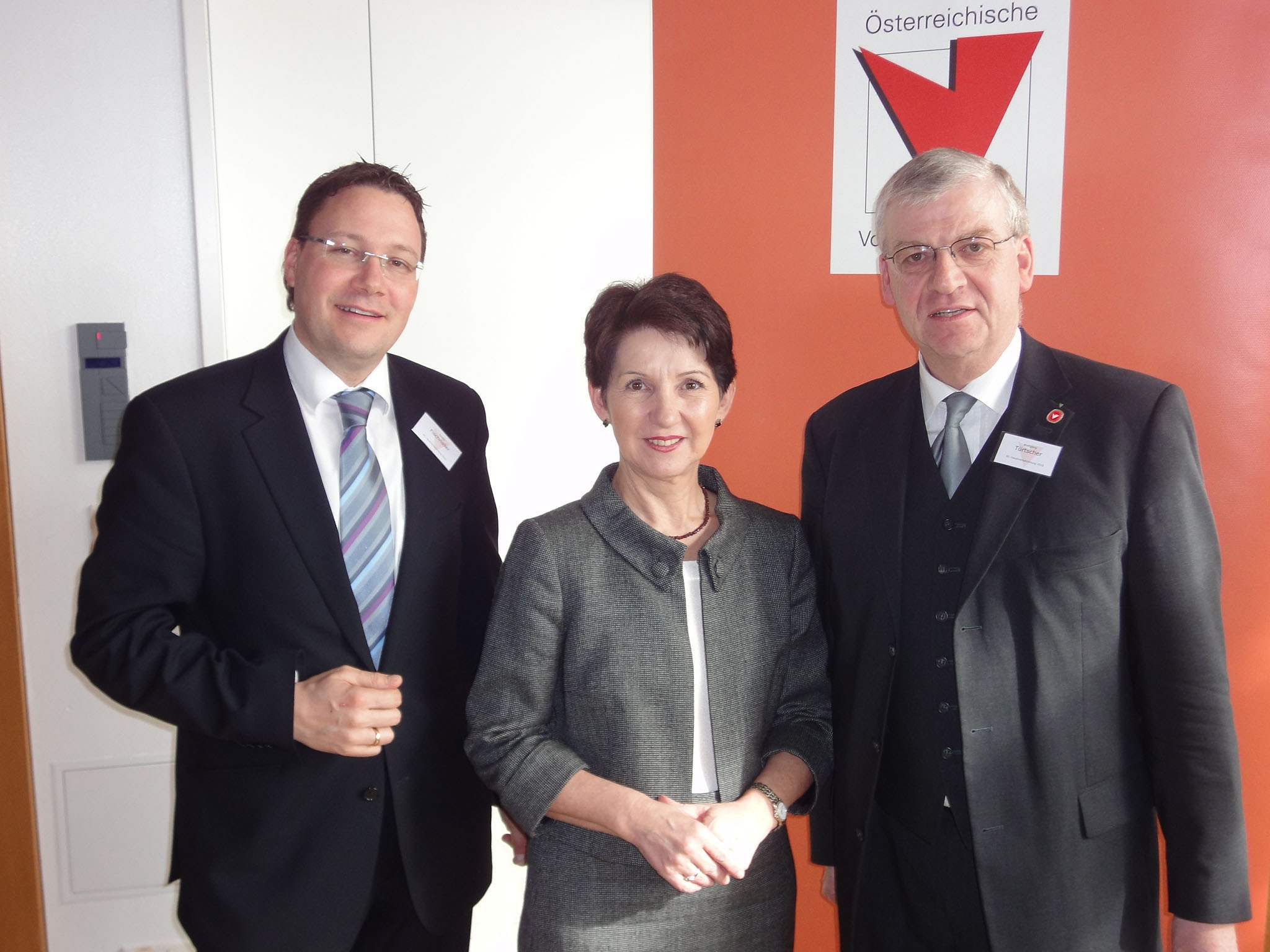 Stefan Fischnaller und Wolfgang Türtscher mit NR-Präsidentin Barbara Prammer, der Vorsitzenden des österr. VHS-Verbandes.