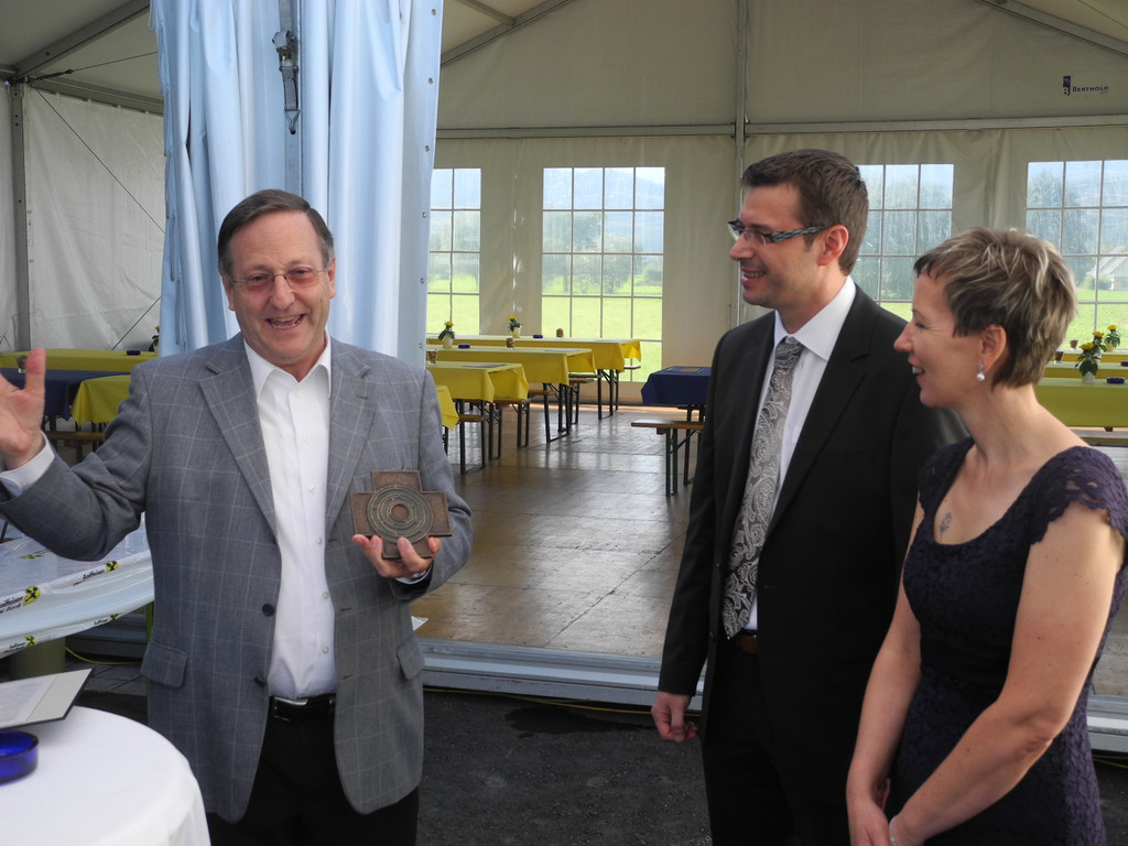 (l.) Pfarrer Blum mit dem Ehepaar Norbert und Luzia Lampert