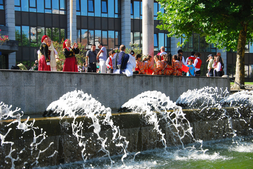 Am Vorplatz des Landhauses formierten sich die Mitwirkenden zum Umzug durch die Stadt.