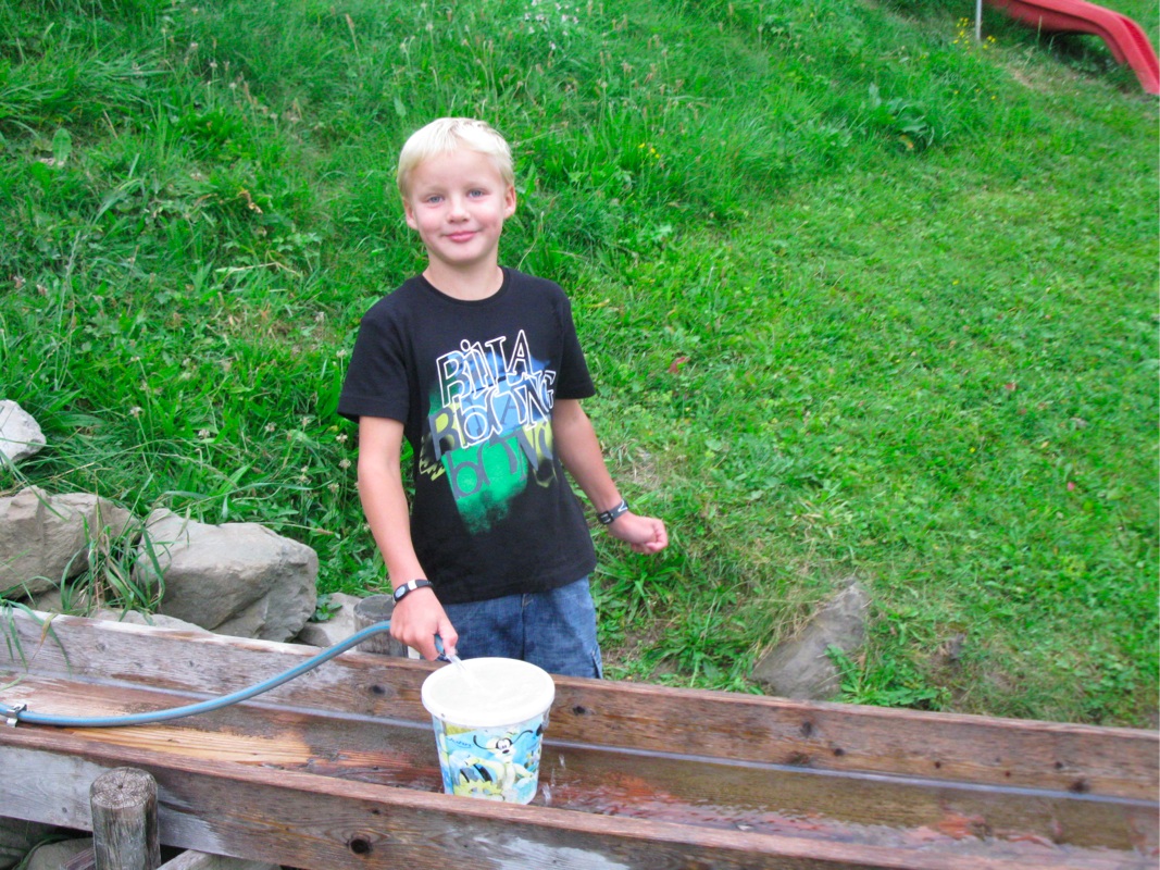 Matthias vergnügte sich mit Staudammbauen auf dem Kinderspielplatz