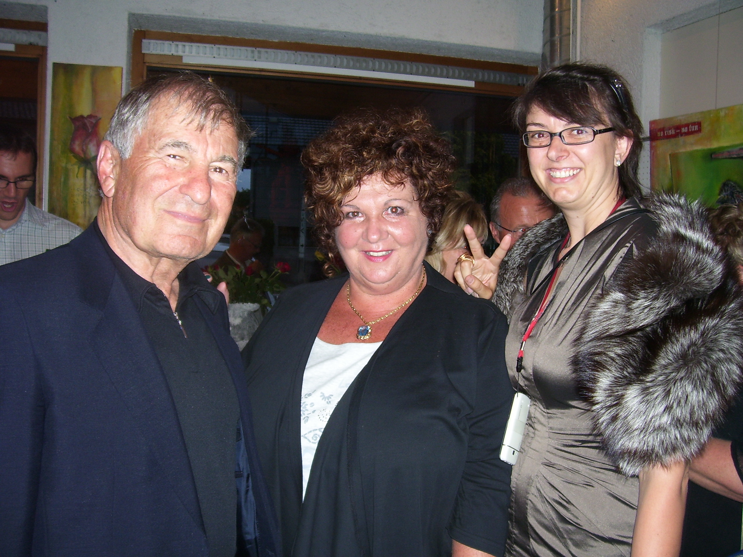 Gerty Lang mit ihrem ehemaligen Zeichenprofessor Gerhard Winkler und Margit Hinterholzer.