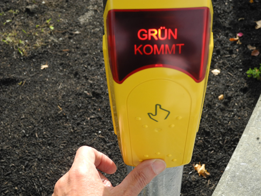 Zur "Grün-Anforderung" für den Schutzweg, muss auf das Gelbe Kästen ganz unten gedrückt werden bis die Meldung GRÜN KOMMT erscheint