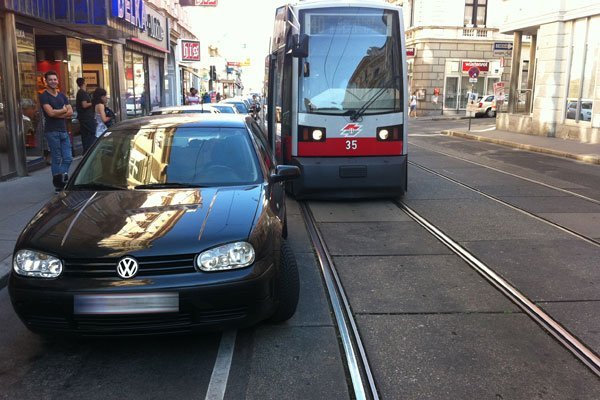 Blockierte Straßenbahn in Währing