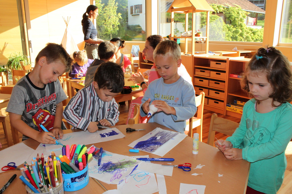 Bilder: Erster Tag im neu erbauten Kindergarten Röthis