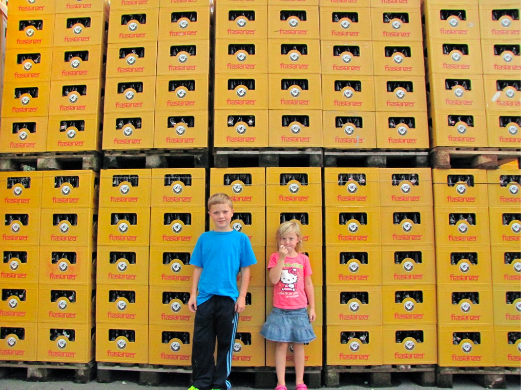 Noah und Medea waren fasziniert von den vielen herumstehenden Bierkisten